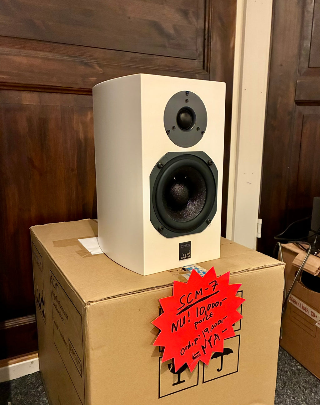 Vita stativare i absolut nyskick. Grym liten högtalare!