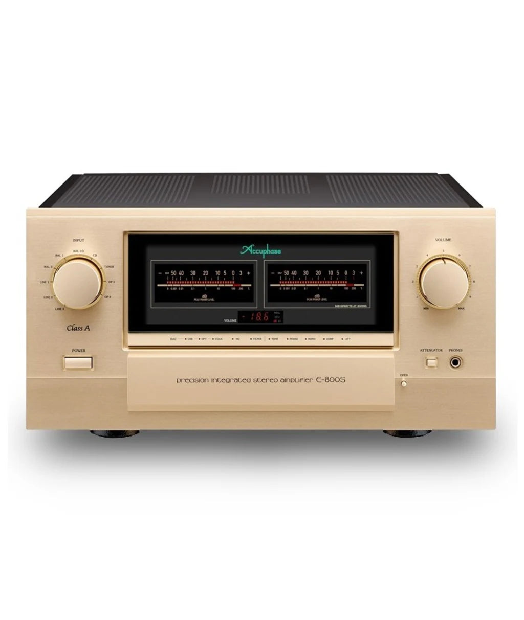E-800S är vår flaggskeppsmodell som innehåller hela Accuphases samlade kunskap om integrerade förstärkare. Förförstärkarsektionen har en balanserad volymkontroll av AAVA-typ, medan slutstegssteget bygger på en instrumentförstärkarprincip och sexfaldig parallell push-pull-konfiguration med effekt-MOS-FET:er drivna i klass A, vilket driver alla högtalare till högre ljuddimensioner. Njut av det ljuvliga akustiska utrymmet som E-800S erbjuder under uppspelning.
