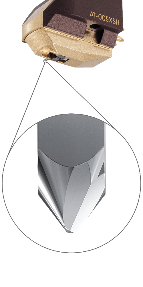AT-OC9XSH Dual Moving Coil-pickup med Shibata nål är designad för att ge enastående kanalseparation. Pure Copper från Ohno Continuous Casting (PCOCC) spolar säkerställer ren ljudöverföring och är inriktade i en omvänd V-formad formation för att utöva mindre tryck på nålen och därigenom minimera distorsion. Ljudkvaliteten förstärks ytterligare av en styv aluminiumkropp som minskar resonansen, en neodymmagnet och premium permendurok som ökar den magnetiska energin, och den nakna Shibata-nålen på en konsol av bor som spårar skivans spår med otrolig noggrannhet, vilket ger rik, full- räckviddsljud och hög transientrespons. Pickupen har förgängats, vilket gör att den kan monteras på ett headshell eller en integrerad tonarm med bara två skruvar – inga muttrar krävs.